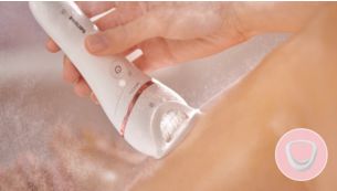 Дизайн эпилятора обеспечивает захват, исключающий выскальзывание, и идеально подойдет для использования в воде. Теперь вы можете проводить комфортную и бережную эпиляцию прямо в душе или ванной. Беспроводная работа гарантирует максимальное удобство.