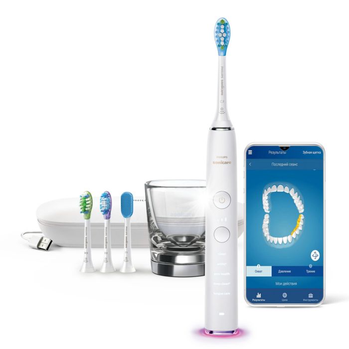 DiamondClean Smart — наша лучшая зубная щетка для полноценного ухода. Четыре эффективные чистящие насадки позволяют позаботиться обо всех аспектах здоровья полости рта, а благодаря технологии Smart Sensor щетка может давать инструктаж и индивидуальные рекомендации.